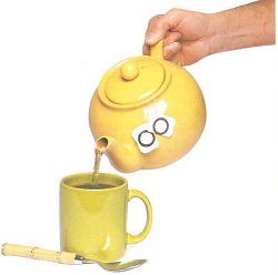 在此圖像中,茶壺中的茶比杯子中的茶多,但是杯子中的茶的溫度與茶壺中的茶的溫度相同。